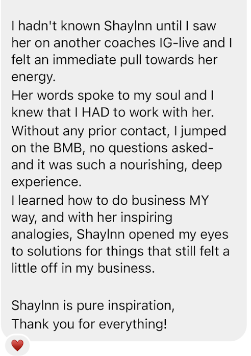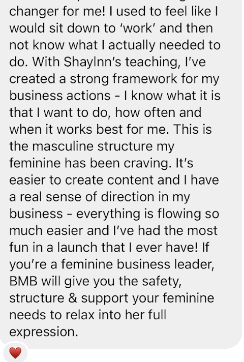 When you do business the feminine way, when you stop outsourcing your power and start leading with your energy, clients start finding you, opportunities start flowing and business finally feels like freedom you’ve been after.